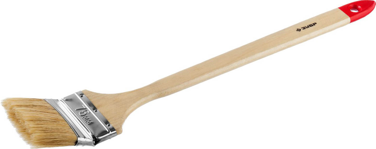 Кисть радиаторная угловая ЗУБР "УНИВЕРСАЛ-МАСТЕР", светлая натуральная щетина, деревянная ручка, 75мм