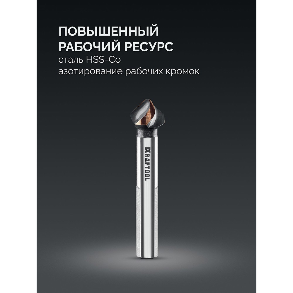 Применяется для зенкования отверстий в сталях, цветных металлах и пластике.