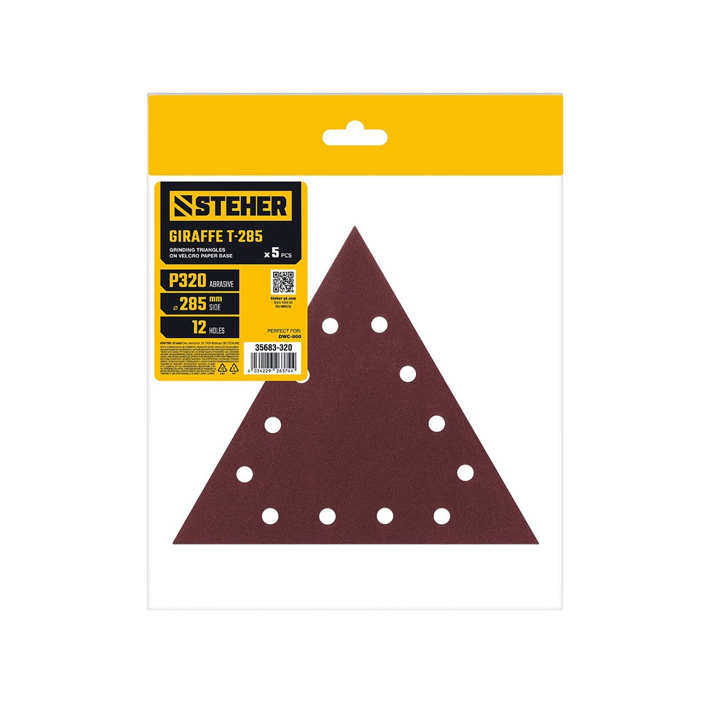 STEHER GIRAFFE T-285 мм, Р320, шлифовальный треугольник на липучке, 12 отв., 5 шт. (35683-320)