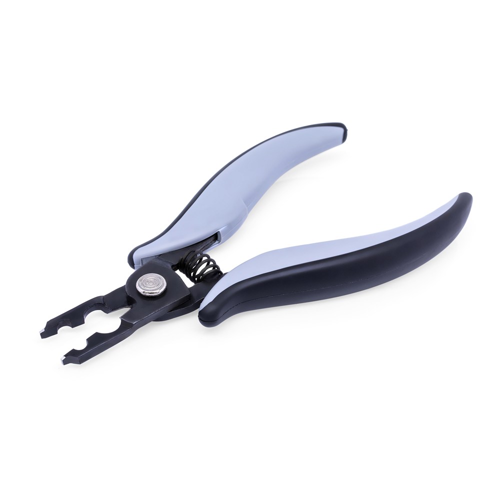 головка инструмента оборудована вставками для медных проводов. Плоская оконечная рабочая часть щипцов служит для установки пружинной тяги к жалам и насадкам;