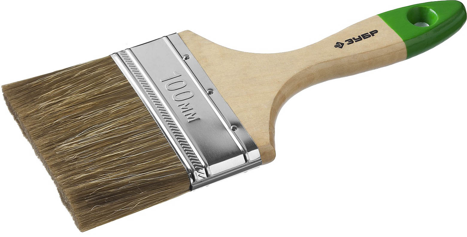 Кисть плоская ЗУБР "ЛАЗУРЬ-МАСТЕР", смешанная щетина, деревянная ручка, 100мм