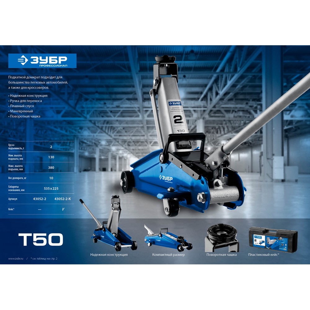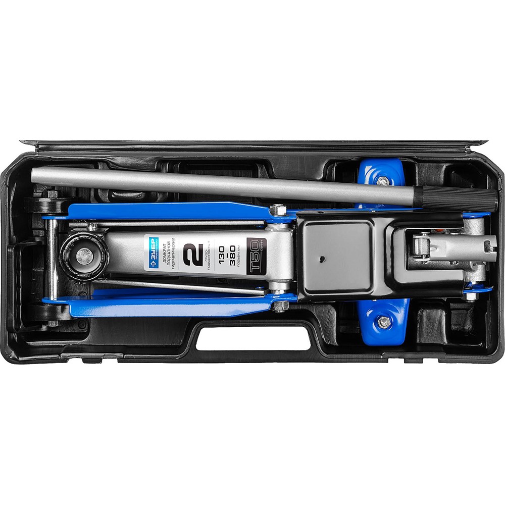 Домкрат гидравлический подкатной T50, 2т, 130-380мм, в кейсе, ЗУБР Профессионал 43052-2-K