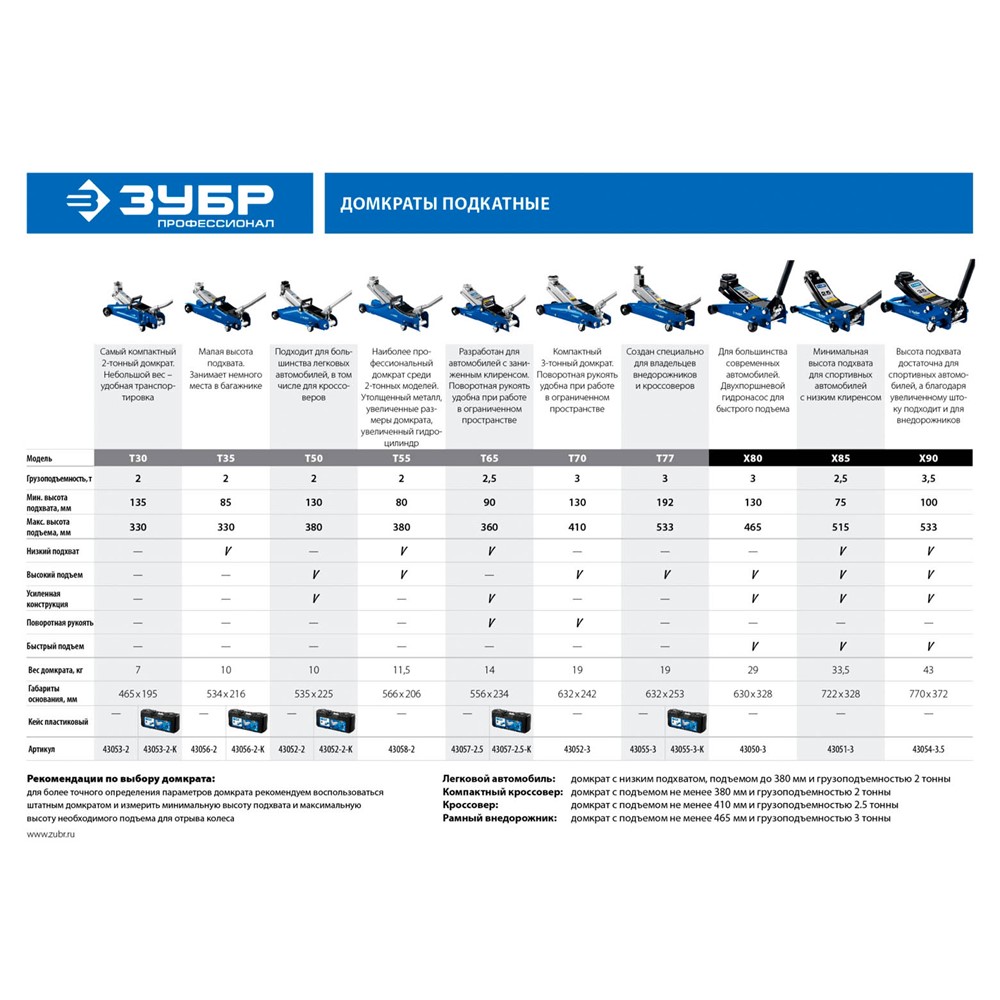Домкрат гидравлический подкатной ЗУБР 43052-2-K, может использоваться как профессионалами на станции СТО, так и простыми автолюбителями. Компактный и мобильный. Компактный подкатной домкрат легко передвигать или даже взять с собой в дорогу. Широкий рабочий диапазон высот. Высокая грузоподъемность. Поворотная ручка домкрата для работы в ограниченном пространстве. Пластиковый кейс для хранения и транспортировки.