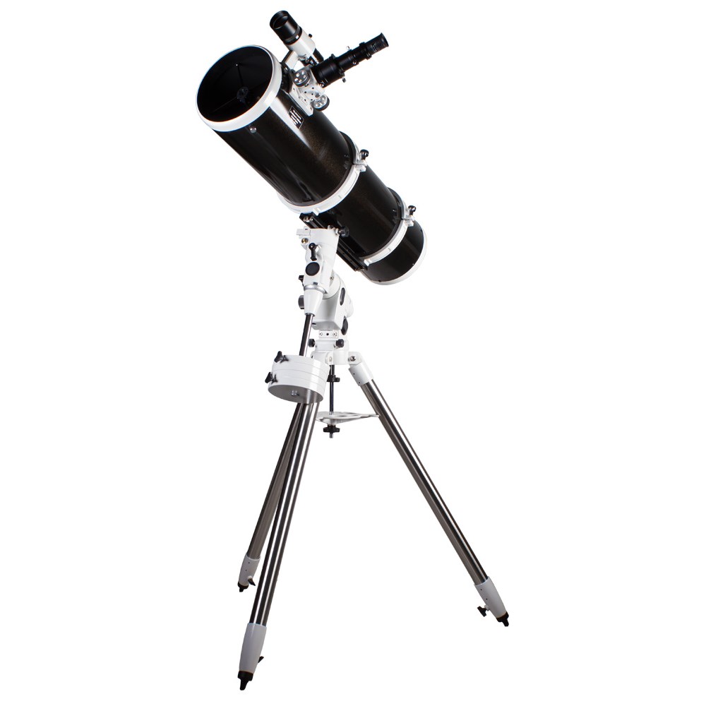 Зеркальный телескоп Sky-Watcher BK P2001EQ5 используется для астрофотографии и визуальных наблюдений. Большое главное зеркало собирает на 77% больше света, чем модели с 150-миллиметровым объективом. Рефлектор подходит для изучения дальнего космоса. Экваториальная монтировка позволяет компенсировать суточное вращение небесных тел. Параболическое главное зеркало формирует яркую картинку, свободную и от хроматических, и от сферических аберраций. Телескоп совместим с окулярами с посадочным диаметром 1,25" и 2". В комплект входят окуляры 25 мм и 10 мм. Экваториальная монтировка оснащена механизмами тонких движений по обеим осям. Установочные круги значительно упрощают процесс наведения. Прочная стальная тренога обеспечивает устойчивое положение телескопа и гасит возможные вибрации.