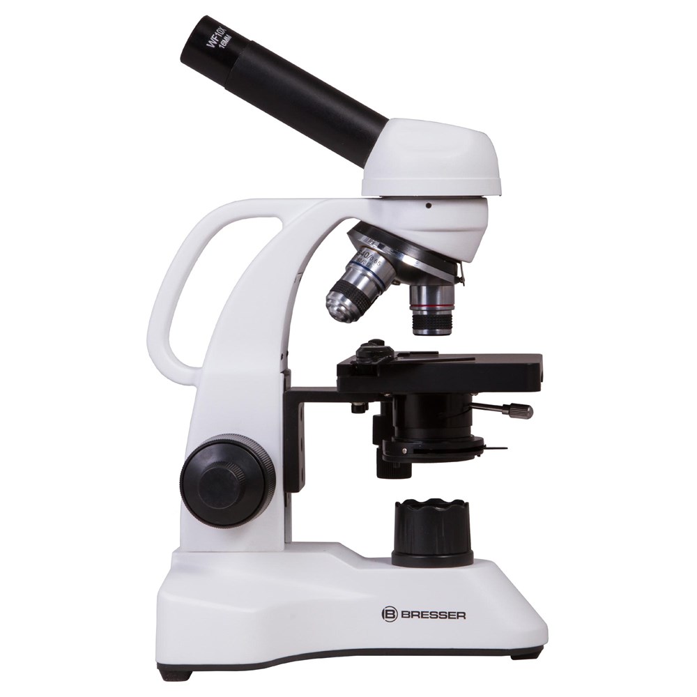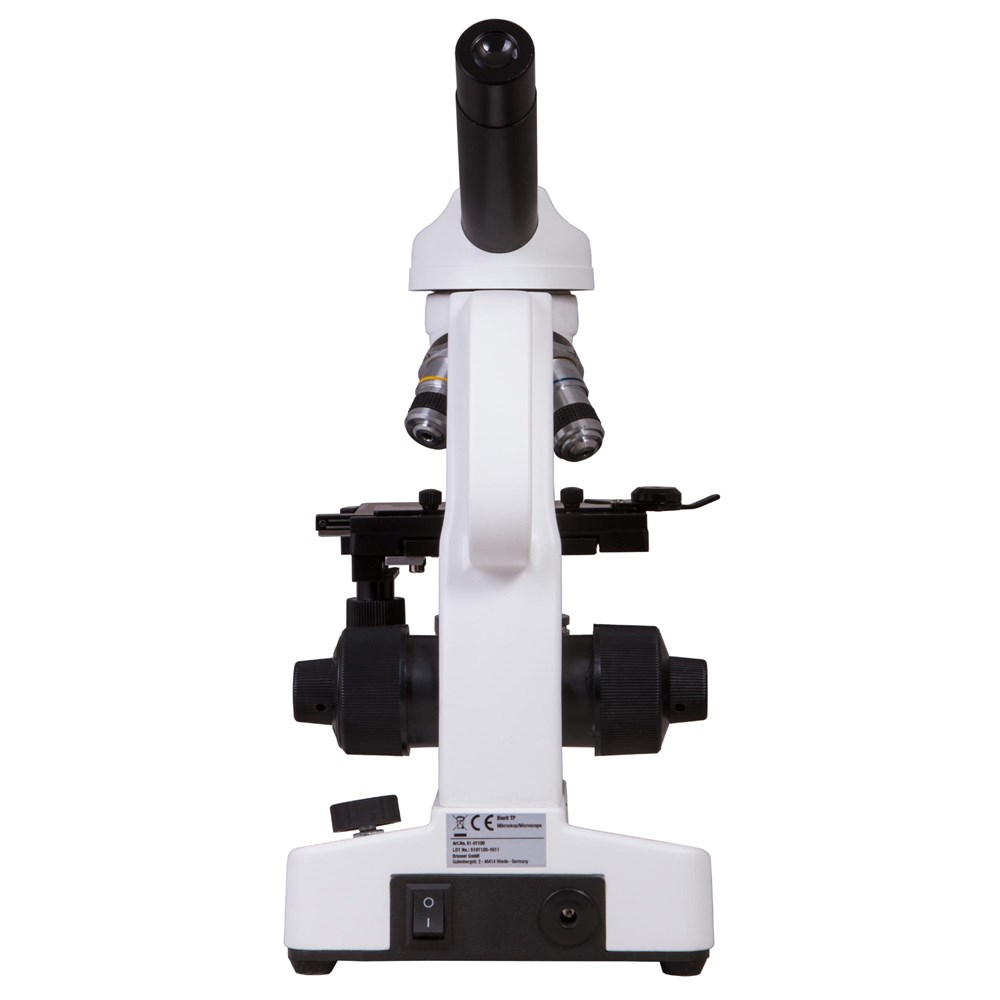 Микроскоп Bresser Biorit TP 40–400x – модель для микробиологических исследований. Он станет хорошим выбором для школьника, студента или того, кто выбрал изучение микромира своим хобби. Микроскоп отлично подходит для проведения научных опытов дома и выполнения ученических лабораторных работ. Микроскоп Bresser Biorit TP 40–400x можно рекомендовать в качестве подарка начинающему микробиологу любого возраста. Монокулярная насадка позволяет проводить наблюдения одним глазом. Насадку можно вращать, поэтому модель удобно использовать при групповых исследованиях. В револьверное устройство установлено три ахроматических объектива, а общий диапазон увеличения оптики составляет от 40 до 400 крат. Микрообразцы фиксируются на предметном столике с препаратоводителем, прямо под которым расположены яркий светодиод и конденсор Аббе с ирисовой диафрагмой и держателем фильтра. Подсветка может работать не только от сети переменного тока, но и от встроенного аккумулятора. Благодаря этому Bresser Biorit TP 40–400x – отличный выбор для экспедиций, походов и любых микронаблюдений вне дома. Для удобства переноски в верхней части корпуса микроскопа предусмотрена широкая ручка.