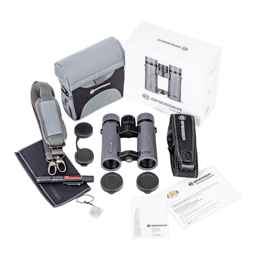 Перед вами небольшой туристический бинокль Bresser Pirsch ED 8x34 с премиум-оптикой и водозащищенным корпусом, заполненным аргоном. Этот всепогодный оптический прибор будет незаменим на прогулке по лесу, в походе, на стадионе, при наблюдениях за птицами или животными. Так как бинокль совершенно не боится непогоды, вы сможете брать его с собой даже на водные прогулки или в длительные поездки по диким местам – он выдержит и сильный дождь, и суровую метель. Качество изображения тоже на высоте: оно впечатлит даже требовательного и искушенного пользователя. Низкодисперсионная оптика с просветлением и фазовой коррекцией Призмы бинокля сделаны из стекла BaK-4, линзы – из низкодисперсионного ED-стекла. Такое сочетание позволяет оптике передавать четкую картинку без оптических искажений и с правильной цветопередачей. Все детали удаленных объектов читаются ясно, а геометрия предметов не искажается. Также на призмах есть фазокорректирующее покрытие, которое делает изображение более реалистичным. А полное многослойное просветление и диэлектрическое покрытие линз увеличивают светопропускание, благодаря чему картинка получается более яркой. Оптика дает 8-кратное увеличение и обеспечивает хороший обзор – в бинокль удобно наблюдать даже за быстро движущимися объектами. Герметичный корпус, заполненный аргоном Конструкция корпуса – это так называемый «открытый мост». Половинки бинокля соединяются двумя усиленными шарнирами, а не одной сплошной перемычкой. С одной стороны, это позволяет прибору оставаться таким же прочным и надежным, с другой – уменьшает его вес и улучшает захват. Бинокль не пропускает воду (класс защиты – IPX7) и может спокойно выдержать кратковременное погружение в водоем на глубину до 1 метра. Внутреннее пространство заполнено аргоном – этот газ, как и азот, помогает бороться с конденсатом, но делает это более эффективно. Удобство настройки для разных пользователей В приборе регулируется межзрачковое расстояние, есть настройка диоптрий на правом окуляре, предусмотрена возможность выбора положения поворотно-выдвижных наглазников. Настройка резкости производится вращением центрального барабана, есть возможность установки прибора на стандартный штатив. Вынос выходного зрачка достаточен для наблюдений в очках.