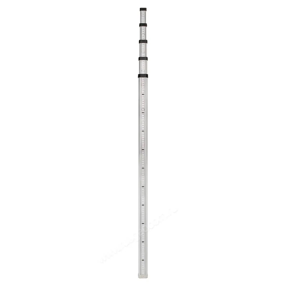 Рейка нивелирная AMO S5 представляет собой 5 последовательно выдвигаемых секций на высоту до 5 м, которые вы можете надежно зафиксировать с помощью блокирующей кнопки. Оснащена как Е-градуированной, так и миллиметровой шкалой, что позволяет проводить измерения с точностью до 1 мм. Для достижения максимально вертикального положения нивелирная рейка оснащена пузырьковым уровнем.