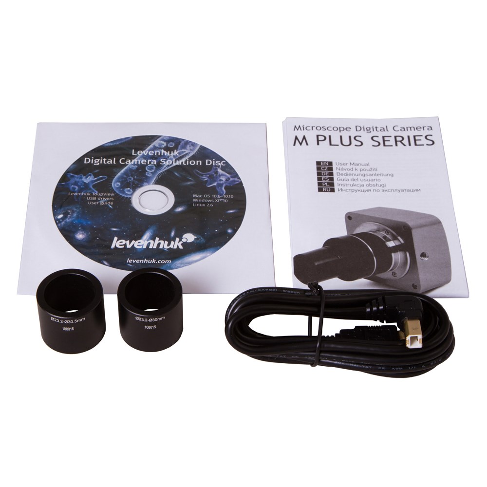 - 2 адаптера для микроскопов с различными диаметрами окулярной трубки (23,2–30 мм и 23,2–30,5 мм)