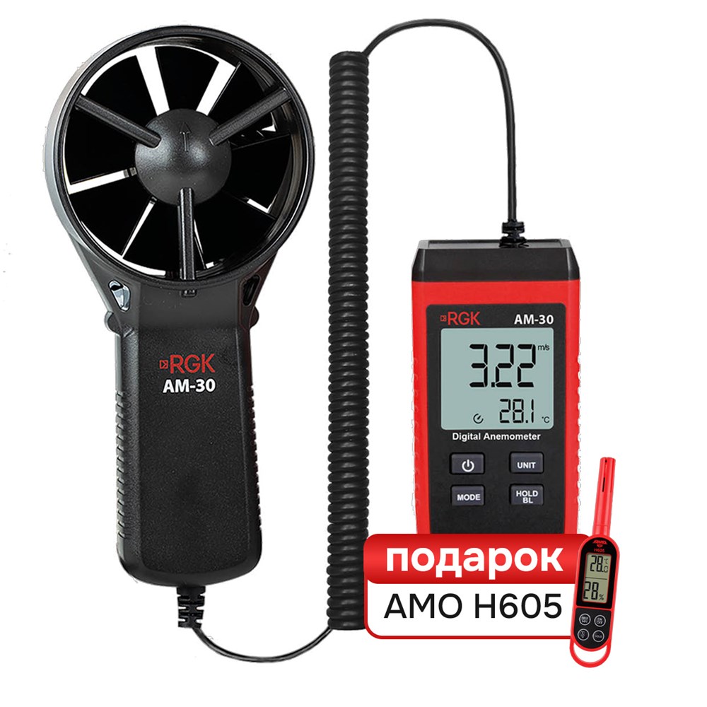 Комплект Анемометра RGK AM-30 и термогигрометра AMO H605