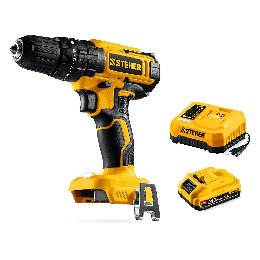 STEHER 20 В, 40 Н·м, 1 АКБ LMS (2 А·ч), ударная дрель-шуруповерт (CDS-40-21)