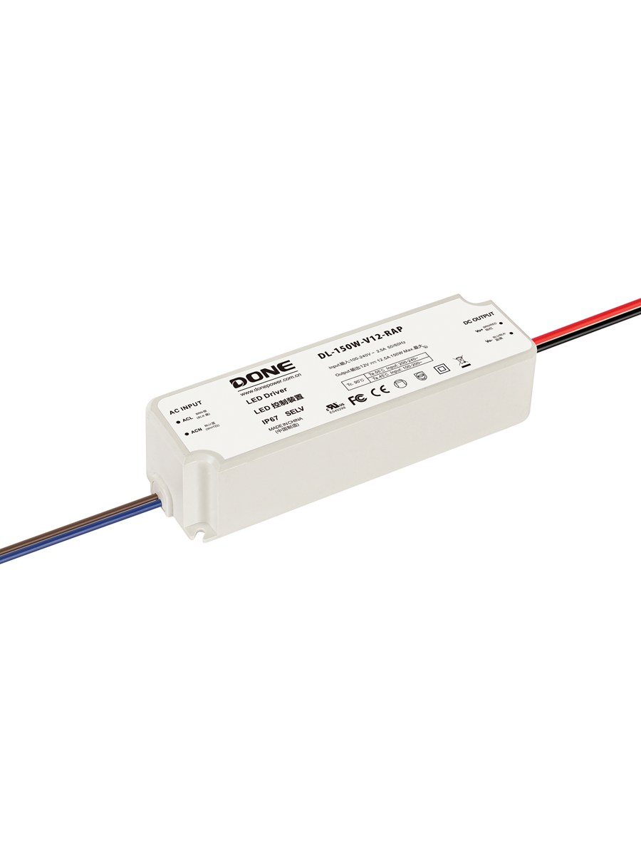 AC-DC, 150Вт, источник питания, IP67, вход 100...240В АС, 47…63Гц, выход 12В/0...12,5A, в пластиковом корпусе 171*53*37мм, рабоч. темп. -20~45℃, гарантия 3 года