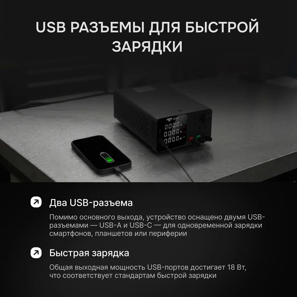 - Разрешение регулировки: 10 мВ по напряжению, 1 мА по току