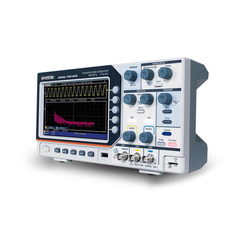 Частота дискретизации 1 ГГц/ кан на длине записи 1000 точек. Встроенный генератор СПФ - 1 канал (до 25 МГц), 4 базовых и 16 форм сигналов произв. формы, ЦАП 14 бит, дискретизация 125 МГц. Автоизмерения (30 параметров), курсорные измерения, функции математики - сложение, вычитание, умножение, деление. Режимы сбора данных - выборка, пиковый детектор (>2,5 нс), усреднение (4 … 128), ZOOM (растяжка). Частотный анализ (БПФ) на участке 2048 точек (с.к.з./ дБ). Внутренняя память 16 осциллограмм, 8 профилей настроек, 6-разрядный частотомер