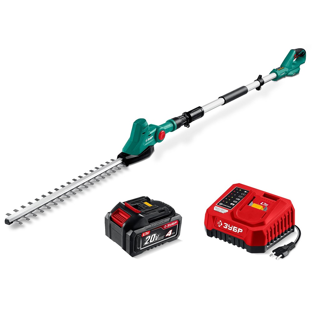 ЗУБР 20 В, 460 мм, 1 АКБ LMS (4 Ач), кусторез аккумуляторный со штангой (КРАШ-2046-41)