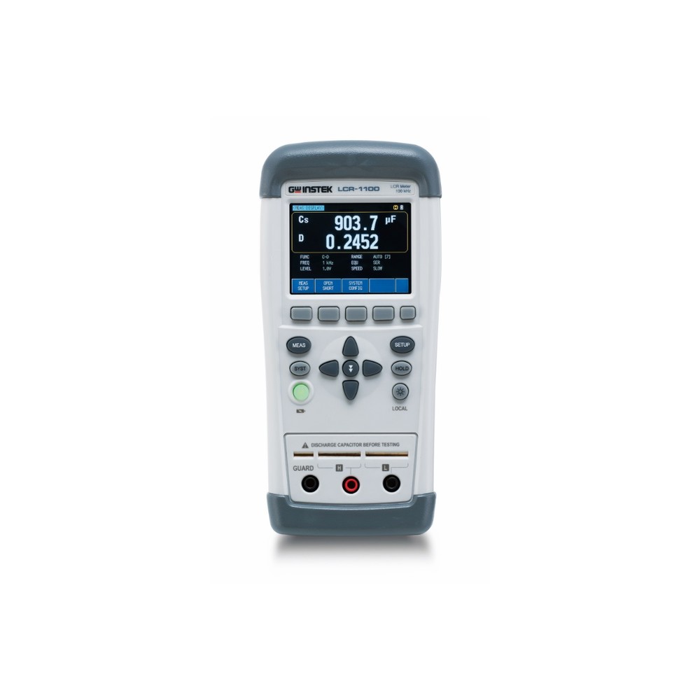 Сенсорный ЖКИ (диаг. 7 см). Тест сигнал – 8 фиксированных значений частоты. Уровни тест-сигнала - 0,3 Вскз/ 0,7 Вскз/ 1Вскз (перем.), ± 1В пост.(DC). Схема измерения - параллельная или последовательная. Одновременная индикация двух измеряемых параметров. Режим ∆-измерений. Функция сортировки для входного контроля (6 номиналов % допуска). Компенсация начальной емкости и сопротивления. Макс. индикация «50.000». Регистрация данных через ПО (Data Logging). В комплекте изм. кабель с SMD щупом «пинцет»/Tweezers (LCR-108)