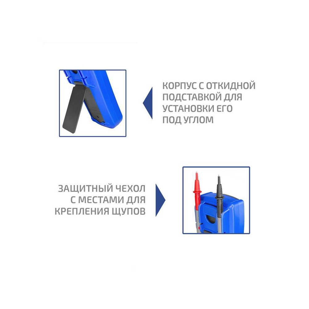 Бесконтактный детектор напряжения (NCV); Проверка диода; Проверка целостности цепи (прозвонка); Измерение относительных значений; Ручной и автоматический выбор диапазона; Максимальное и минимальное значение; Режим удержания значения на дисплее; Автоматическое выключение Звуковые и световые оповещения |