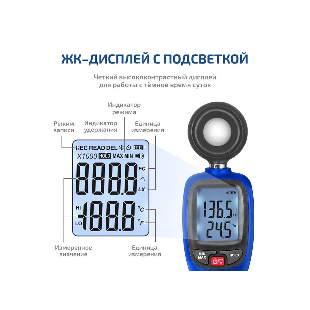 - Высококонтрастный ЖК-дисплей с подсветкой
