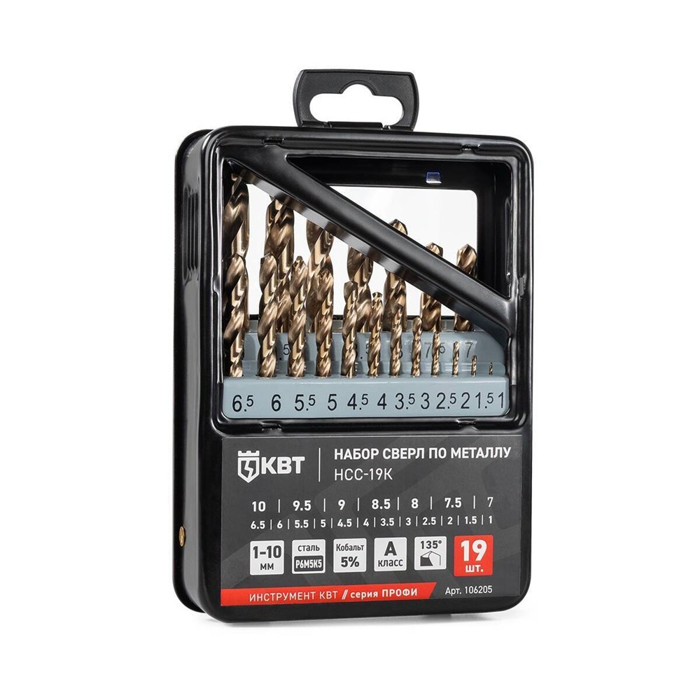 Набор сверл по металлу НСС-19К серия ПРОФИ 19 шт., сталь М35 (Р6М5К5) Кобальт, 1-10 мм