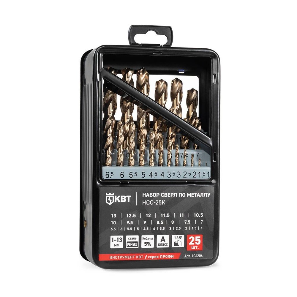 Набор сверл по металлу НСС-25К серия ПРОФИ 25 шт., сталь М35 (Р6М5К5) Кобальт, 1-13 мм