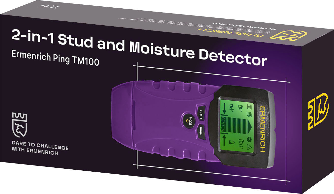 Ermenrich Ping TM100 объединяет в едином корпусе детектор скрытой проводки и контактный влагомер. Прибор позволяет пользователю обнаружить деревянные конструкции, металлические профили или электропроводку, а также оценить влажность древесины, бетона и штукатурки. Широкая функциональность значительно упрощает инспекцию материалов, предотвращая недосушивание материалов, коррозию арматуры и образование плесени на ранней стадии.