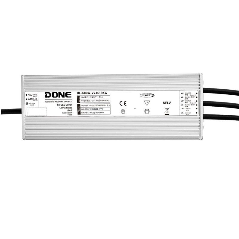 Водонепроницаемый блок питания серии RXG-W со степенью защиты IP67, регулируемой яркостью и постоянным напряжением, работает в диапазоне входного напряжения 90–305 В переменного тока.