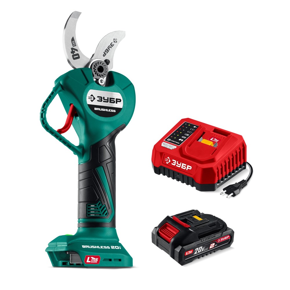 ЗУБР 20 В, 40 мм макс. рез, 1 АКБ LMS (2 Ач), секатор аккумуляторный (СКБ-2040-21)