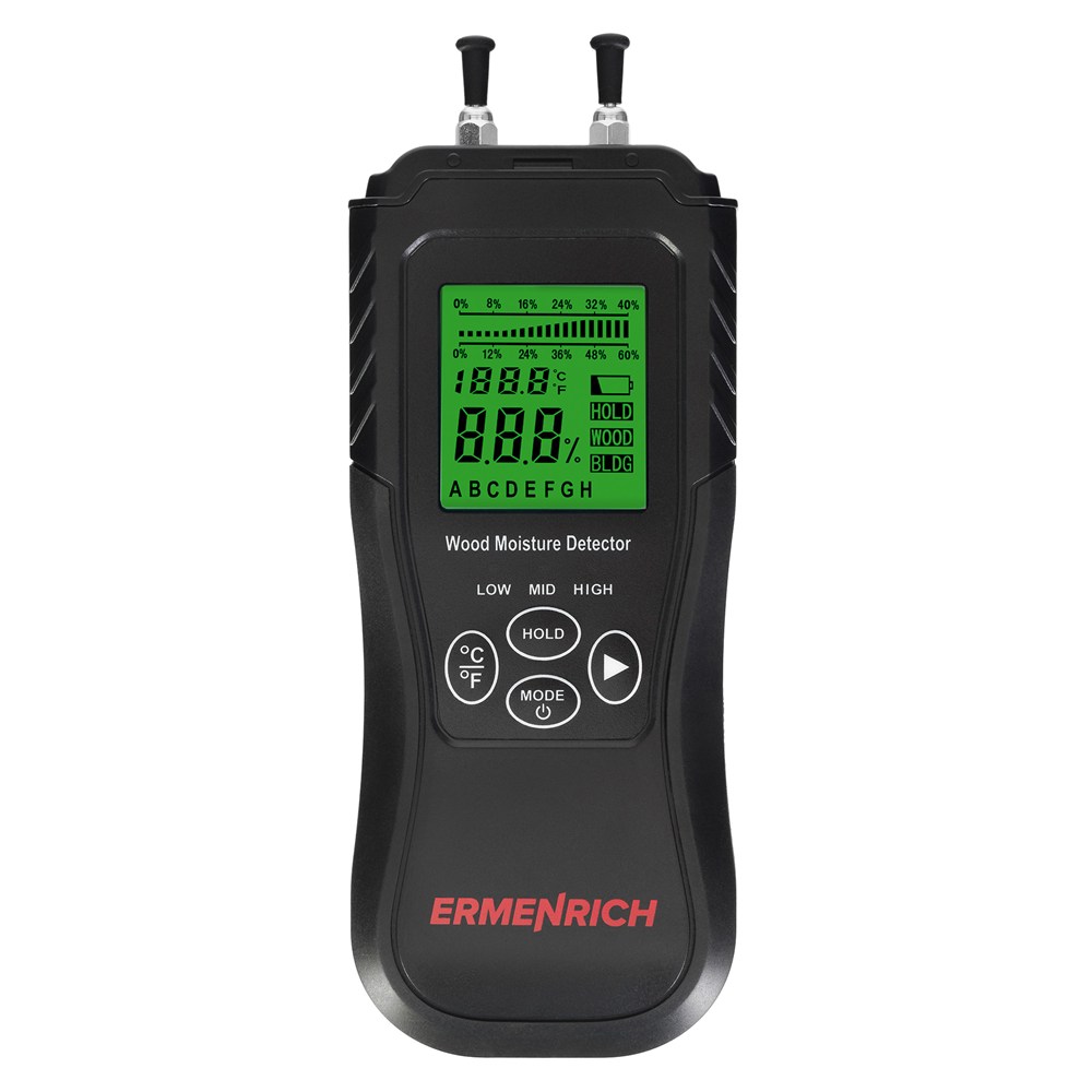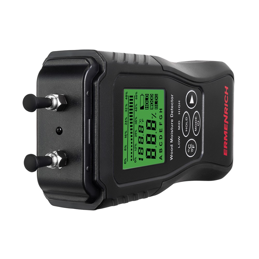 Влагомер (датчик влажности) Ermenrich Wett MW30 значительно упрощает выбор качественных материалов для столярных, строительных и ремонтных работ, а также помогает в контроле качества на производстве. Этот прибор измеряет влажность разных материалов: досок, картона, бумаги, штукатурки, бетона, строительного раствора. Работает по контактной технологии, также может измерять температуру в °C и °F.